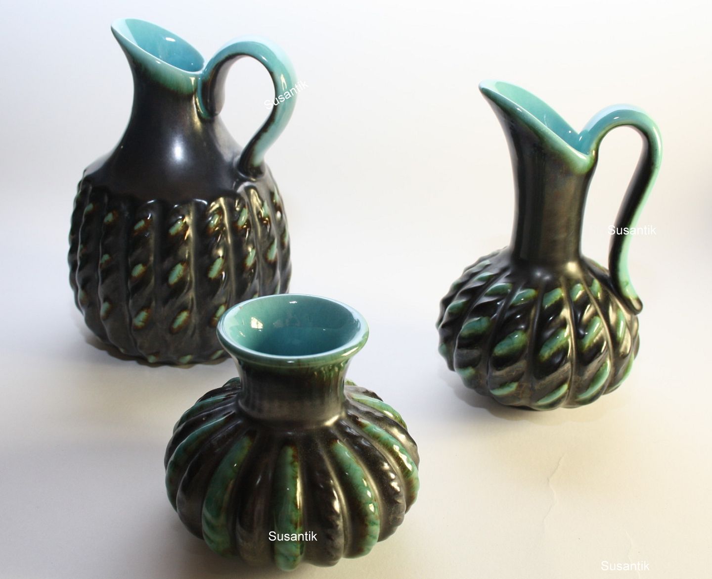 Michael Andersen, Bornholm. Lille vase. Højde 9 cm. Pris: solgt Kande. Højde 18 cm. Pris: solgt Slank kande/vase. Højde 16 cm. Pris: solgt