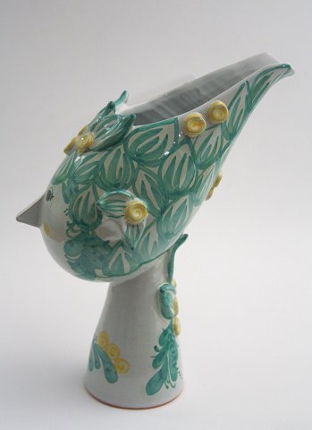 Titania vase i grøn/gul glaseret keramik. Dessinnr. V20. Signeret monogram Danmark 74. H. 27 cm. Afslag på det ene øre se foto, ellers i fin stand.