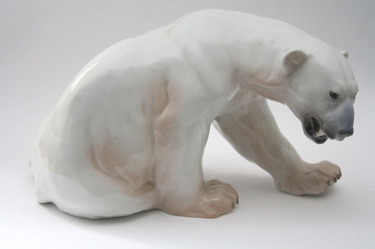 Bing & Grøndahl, stor siddende isbjørn, dek.nr. 1857. II. sortering. Formgivet af Knud Kyhn. Højde 37 cm. Perfekt stand. Pris: SOLGT