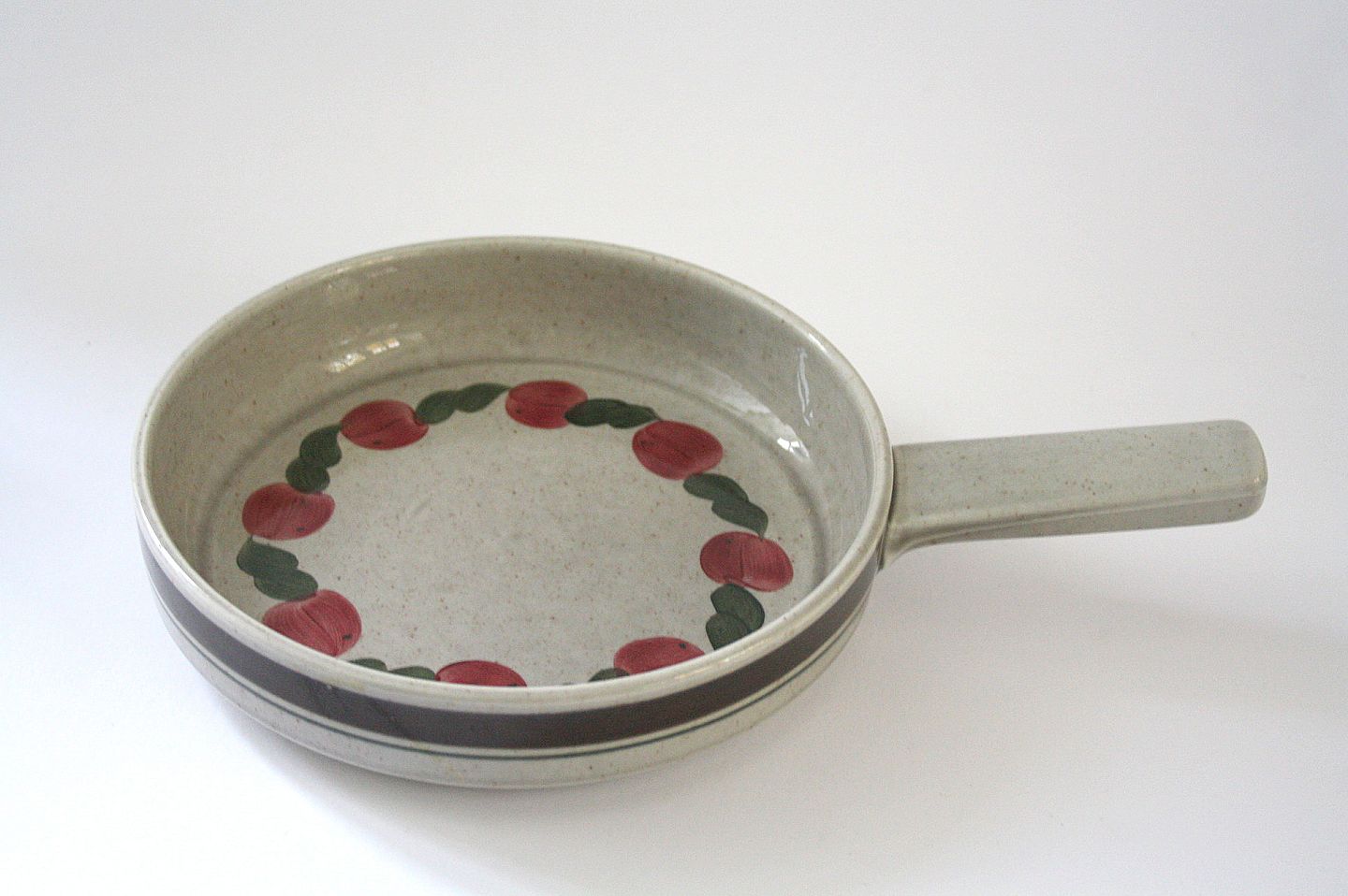 Rørstrand, Birgitta. Gråt stoneware med håndmalede blomster og brun kant. Pande. Højde 4,5 cm. Diameter 19,5 cm. Pris: SOLGT