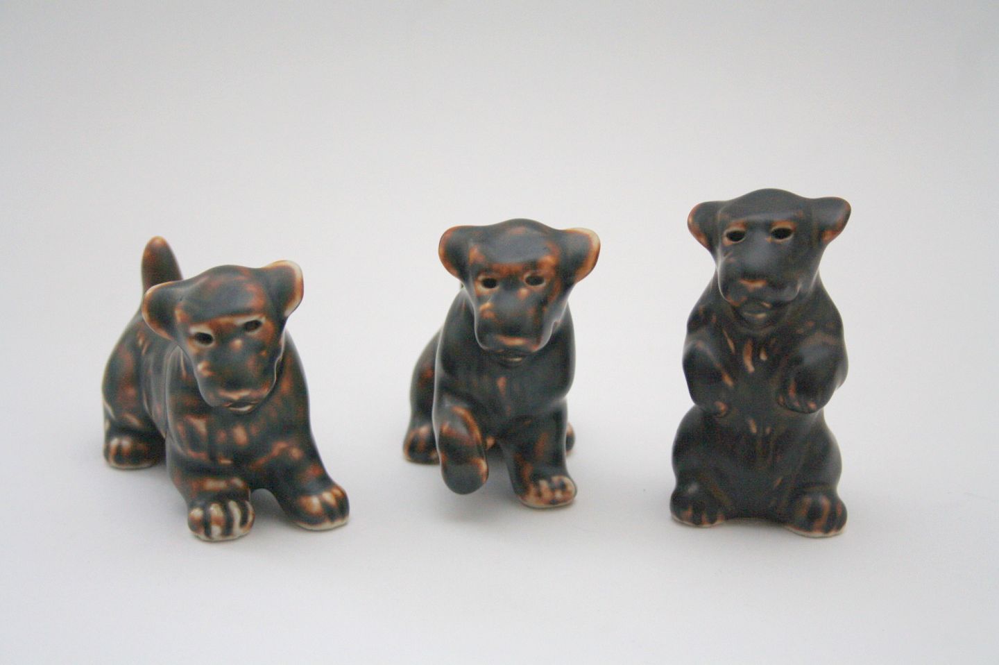 Royal Copenhagen stoneware, brun glasur. Hunde. Antageligt formgivet af Knud Kyhn.