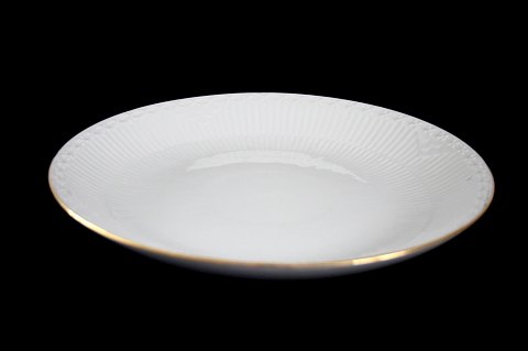 Royal Copenhagen, Tradition, rundt kagefad, hvid rillet halvblonde med guldkant. Dek. nr. 1275/761. Diameter 22 cm. Højde 3 cm. I. sortering, Pris: SOLGT