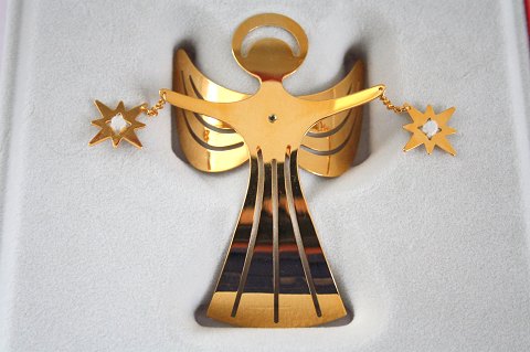 Georg Jensen, juleuro 1989, Engel. Juleuroen er udført i messing belagt med 24 karat guld. Originalæske med følger. Pris: SOLGT