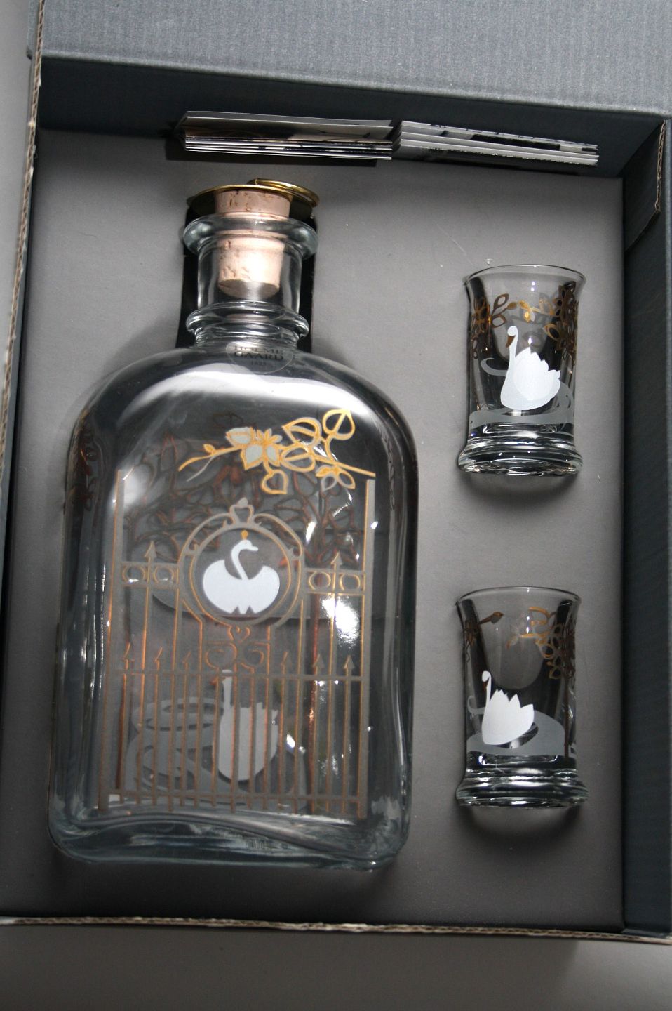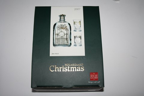 Holmegaard, julekaraffel 2007 med 2 glas i originalæske. Pris: SOLGT