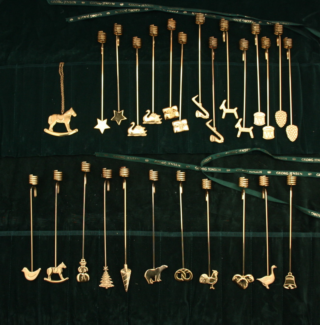 Georg Jensen Lyseholdere forgyldte. Design Andreas Mikkelsen. Alle i originalæske. Pris: 110 kr. stk.