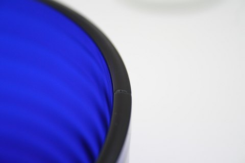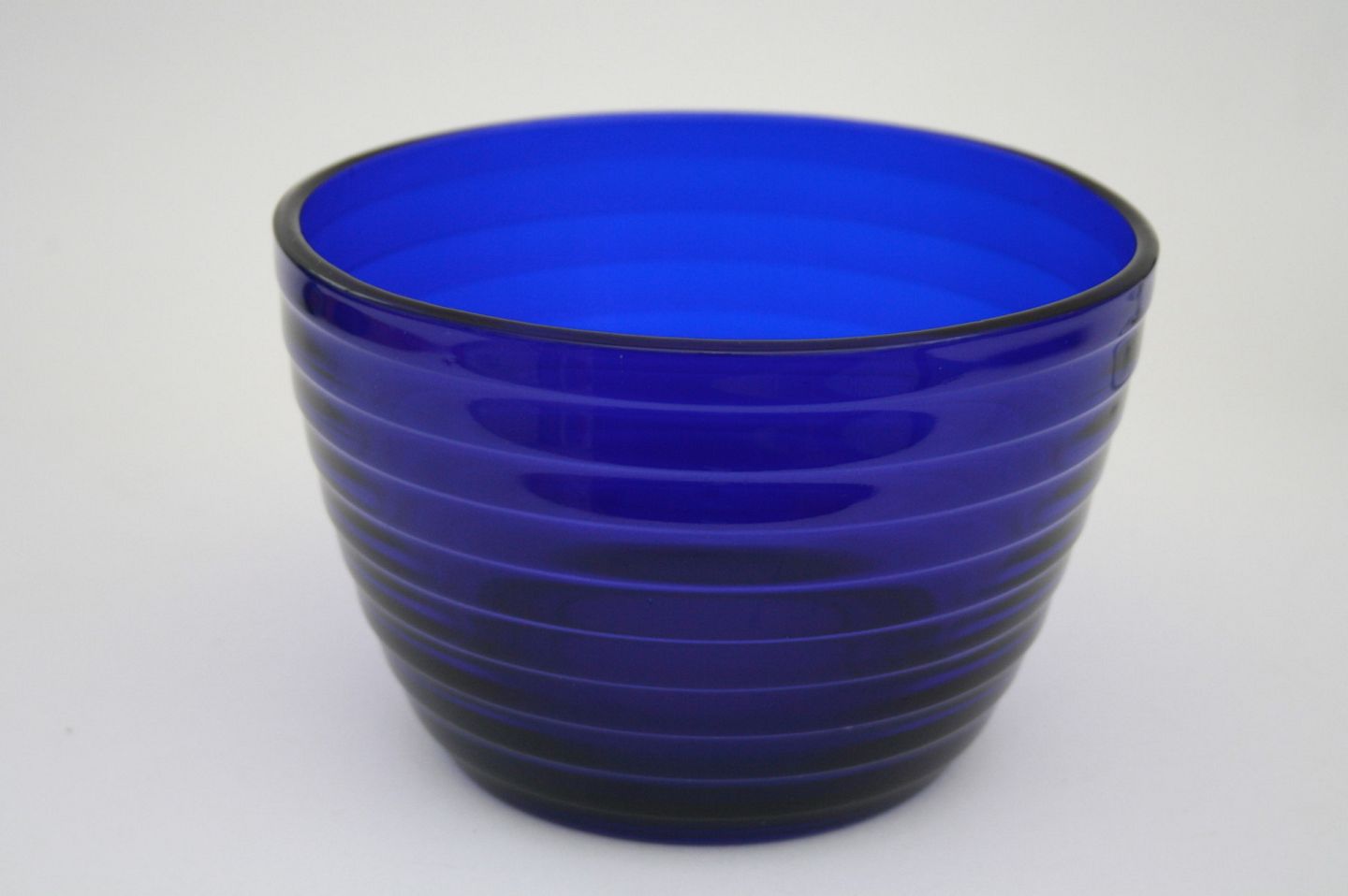 Holmegaard, Broksø presset glas 1938-1941, designet af Jacob E Bang. Mørkeblå høj skål, der er fabrikationsfejl i form af ridser i kanten. Diameter 16 cm. Højde 10,5 cm. Pris: SOLGT