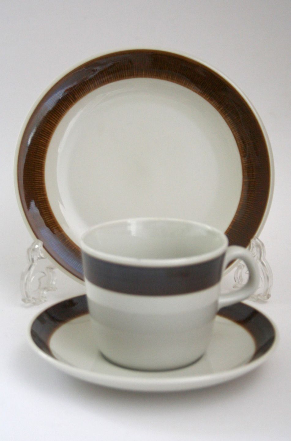 Rørstrand, Brun Koka. Kaffekop med underkop. Højde 6,5 cm. Pris: Kagetallerken. Diameter 17 cm. Pris: