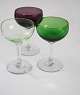 Likør. Højde 8,3 cm. Diameter 6 cm. Lyseblå, neongul, grøn SOLGT Kun violet/rosa (1 stk med mikroskopisk chip Pris: 45 kr.).