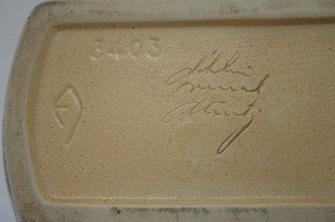 Søholm vase designet af Einar Johansen i 1960'erne. Formnr. 3403. Sart lyse blå glasur. Højde 15,5 cm. Bredde 11 cm. Længde 14 cm. Flot stand. Pris: solgt