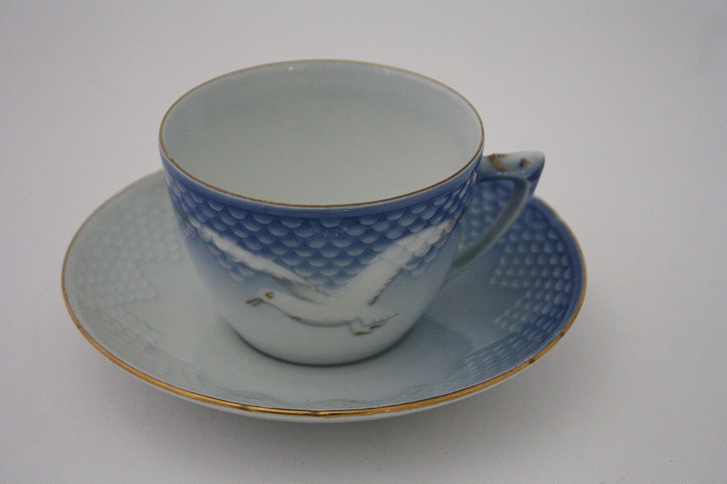 Bing & Grøndahl, Måge med guld, Chokoladekop. Nr. 475. Højde 6 cm. Diameter 8,5 cm. Pris: SOLGT