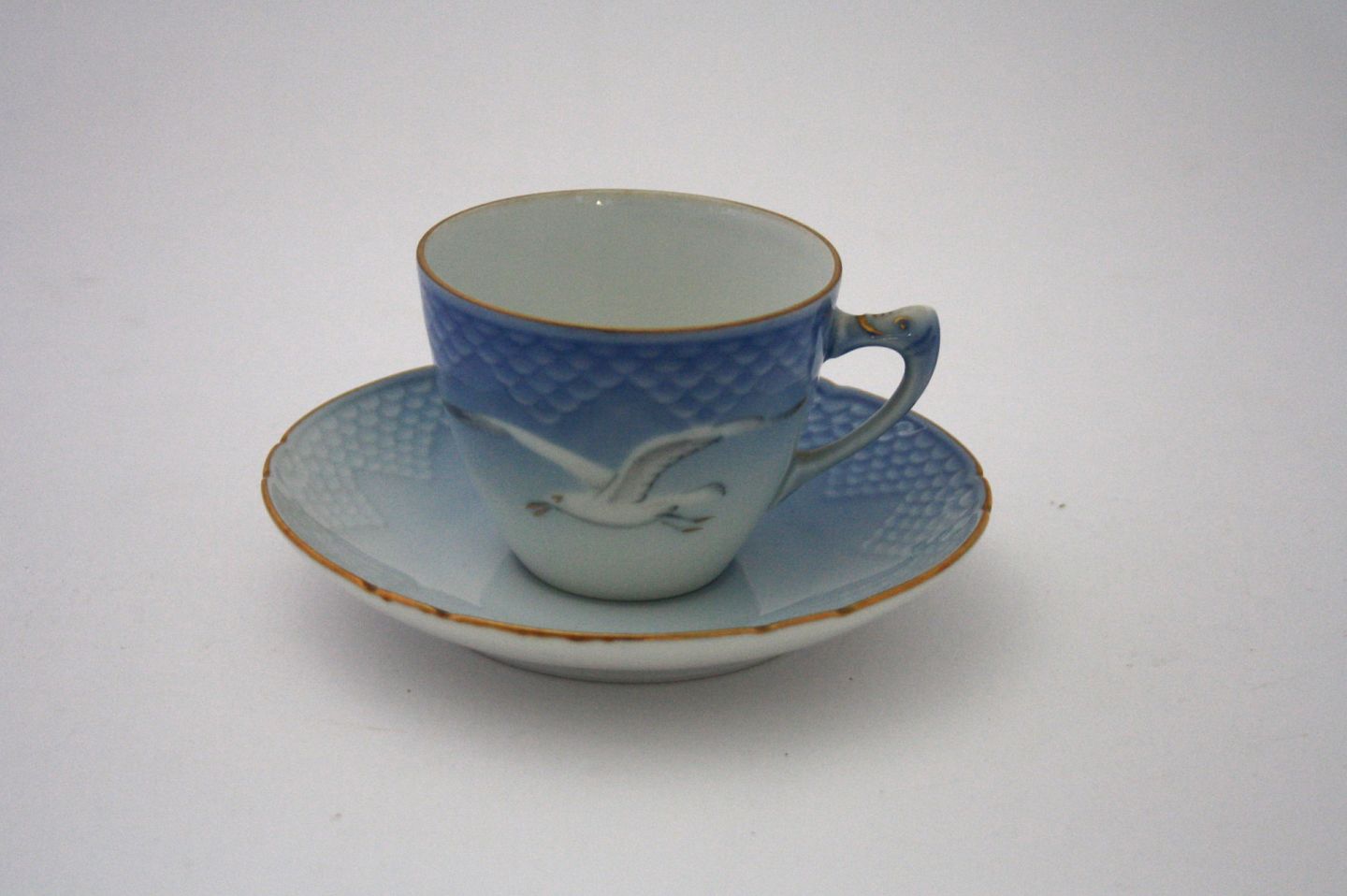 Bing & Grøndahl, Måge med guld. Mokkakop nr. 108B. Højde 5,5 cm. Diameter 6,5 cm. I og II sortering. Pris: SOLGT