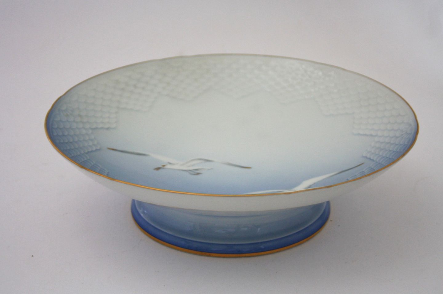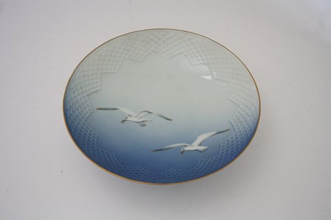 Bing & Grøndahl, Måge med guld. Opsats på lav fod. Dek.nr. 206. II. sortering. Højde 7 cm. Diameter 25,5 cm. Pris: