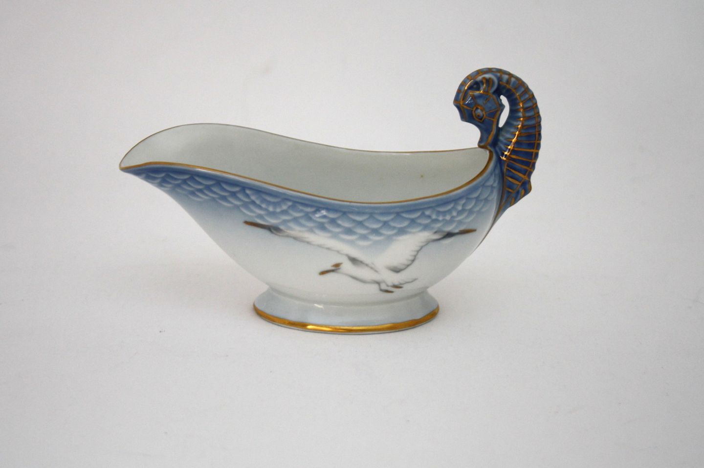 Bing & Grønahl, Måge med guld. Smørnæb. Dek.nr. 12. Længde 14 cm. Højde 9,5 cm. Pris: SOLGT