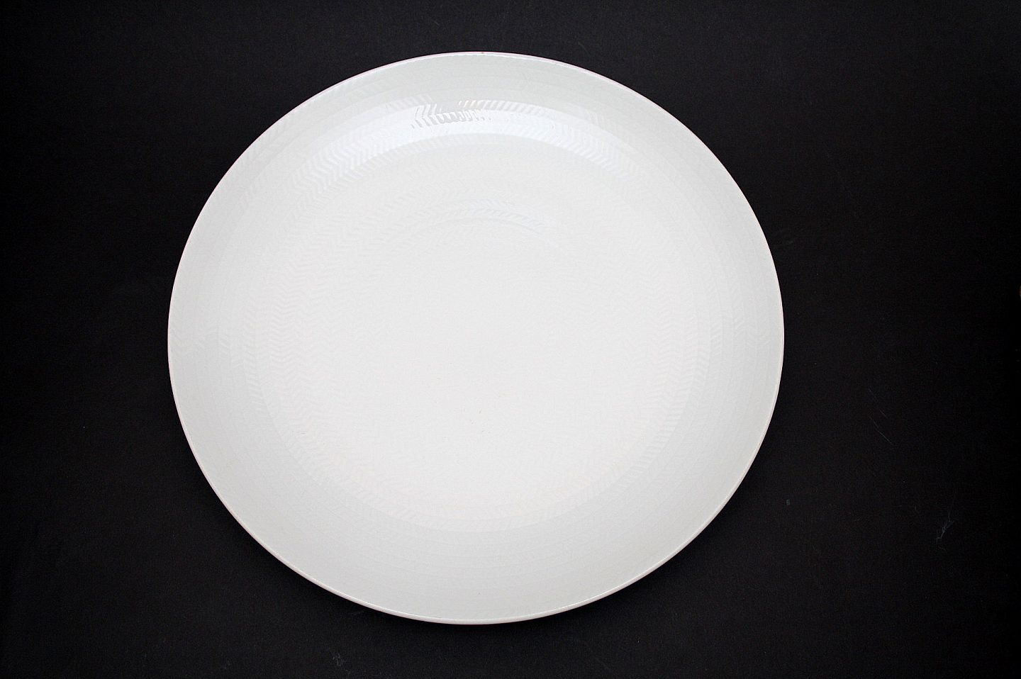 Rørstrand, Blå Eld, Frokosttallerken, designet af Hertha Bengtson i 1951. Stort hvidt rundt fad. Diameter 33 cm. Lille brændingsprik i kanten, se ekstra foto, ellers perfekt stand. Pris: SOLGT