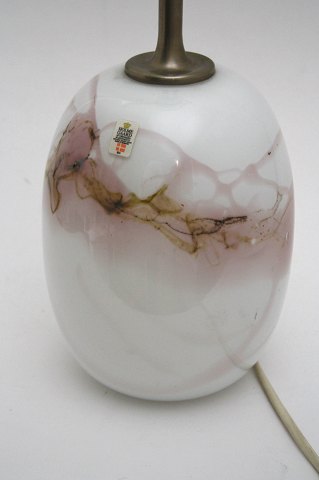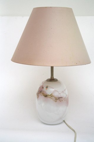 Holmegaard, Sakura bordlampe i oval form opal glas med rosa dekoration. Designet af Michael Bang i 1982. Højde 46 cm. SOLGT