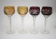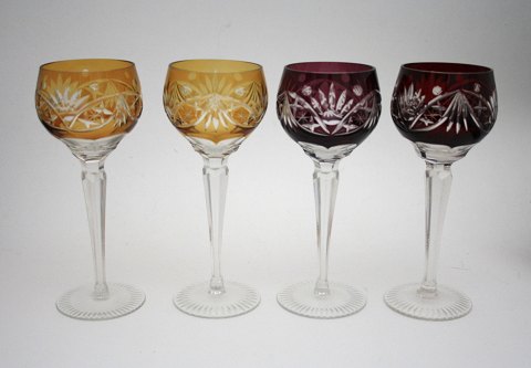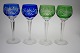 Bøhmiske farvede krystalglas med facetslebet stilk. Højde 21 cm. Øverste diameter 7,5 cm. Der er farvenuanceforskel, se ekstrafotos. Pris: 275 kr. Blå. Lager: SOLGT Grøn. Lager: SOLGT Bordeaux. Lager: SOLGT Gylden. Lager: SOLGT