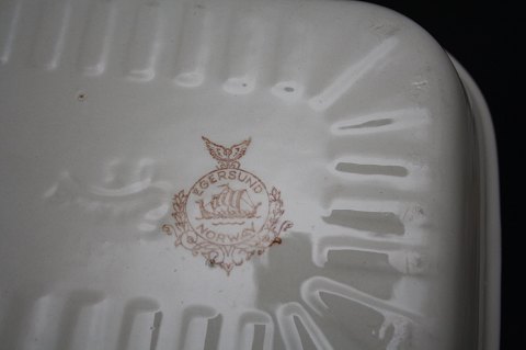 Egernsund, Norge. Fajancefad. Højde 4,5 cm. Længde 23,5 cm. Bredde 18 cm. Flot stand. Pris: SOLGT
