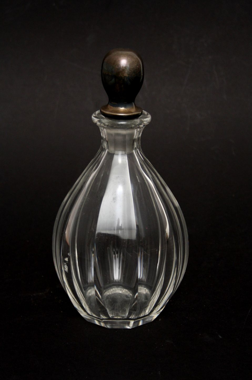 Fransk Baccarat Kantet karaffel med sølvplet prop. Højde 23 cm.