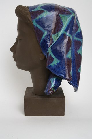 Aluminia, Kvindebuste udformet af Johannes Hedegaard. Dek. nr 159/2847. Højde 32 cm. Pris: SOLGT