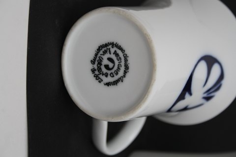 Rosendahl, HC Andersen, designet af Linn Utzon i 2005 i anledning af 200 års jubilæet for Hans Christian Andersens fødsel. Krus. Højde 10 cm. Øverste diameter 9,5 cm. Pris: Den lille Havfrue. solgt Sommerfuglen. solgt