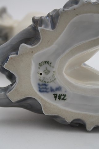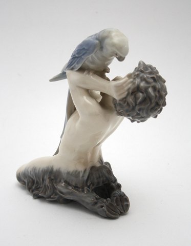 Royal Copenhagen, Faun med blå papegøje. Nr. 742. Højde 17,5 cm. Længde 13 cm. II sortering. Flot stand. Pris: SOLGT