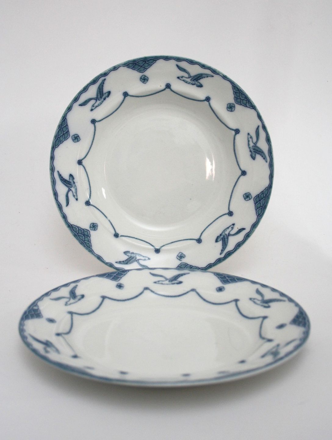 Gustavsberg, Øresund. Pæn stand med lidt overfladekrakeleringer, som er typisk for fajance. Flad middagstallerken. Diameter 23,3 cm. Pris: SOLGT Dyb middagstallerken. Diameter 23,5 cm. Pris: SOLGT