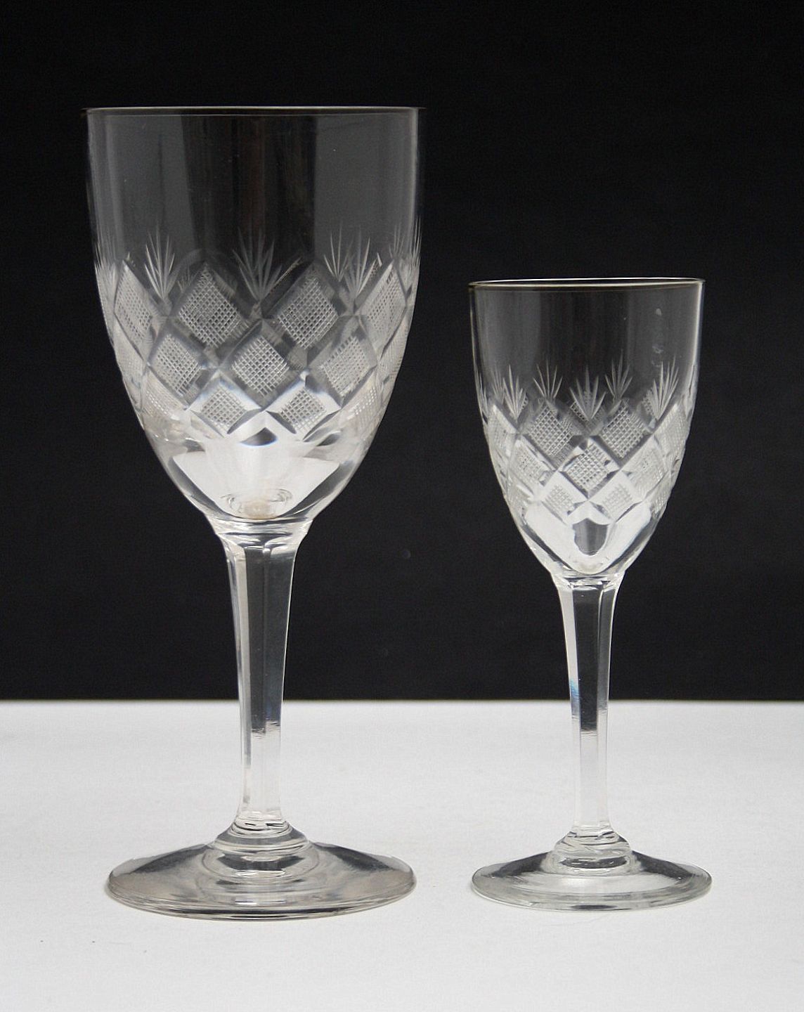 Lyngby glasværk, Antik glas med antikslibning og slebet stilk.