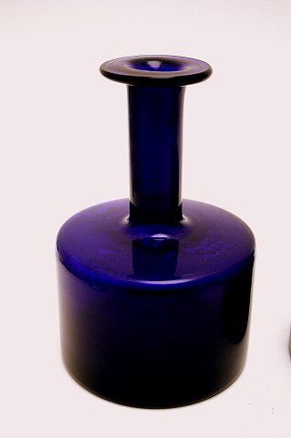 Kastrup glasværk, Flaskevaser i koboltblå glas fra 1964. Højde 16,5 cm. Nederste diameter 10,5 cm. Pris: SOLGT