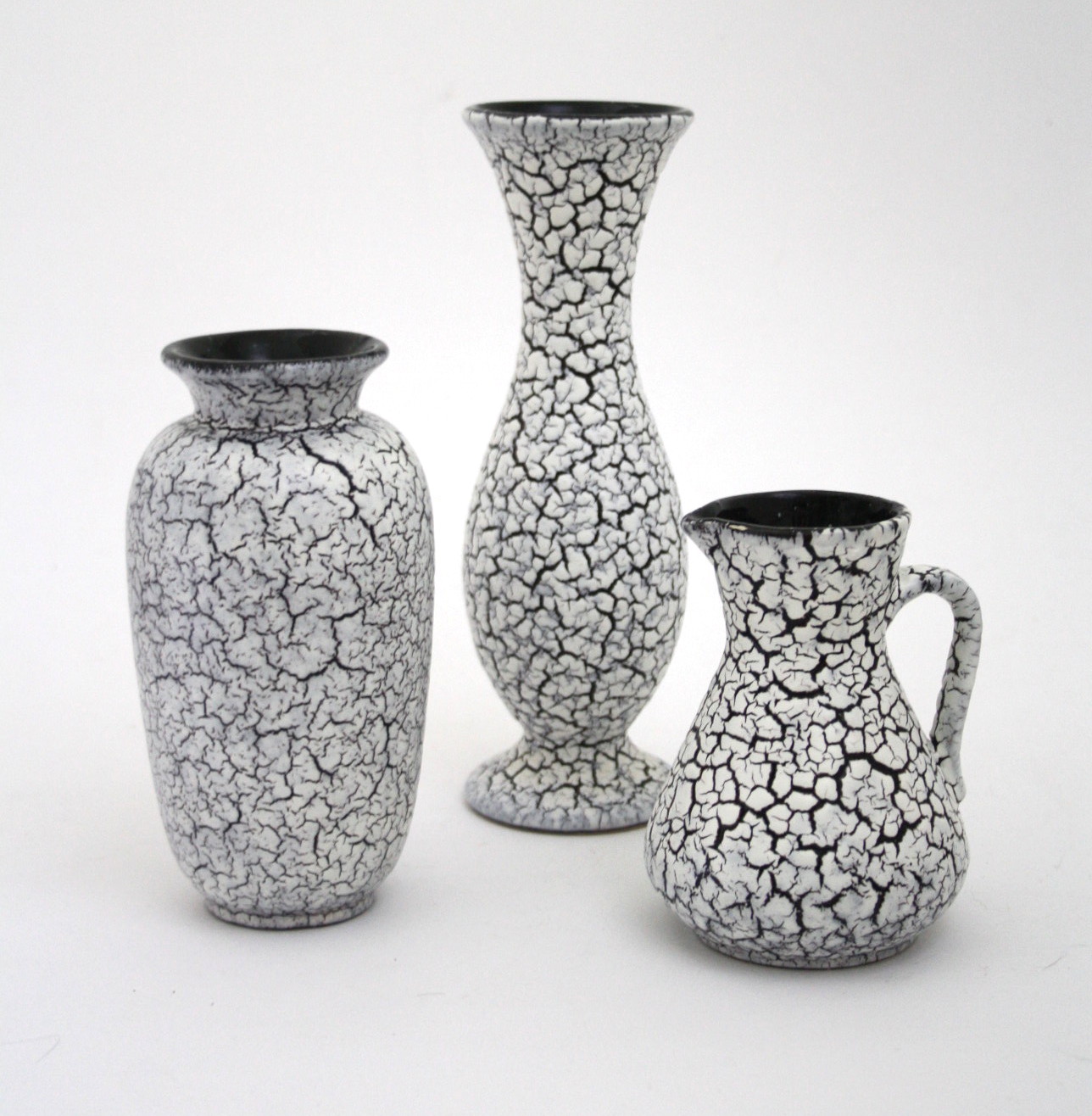 Jasba keramik, West Germany keramikværkstedet blev grundlagt i 1926 i Koblenz. Denne serie er fra 1960'erne. Sort og hvid glasur.