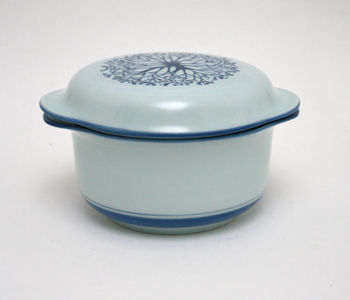 Desiree, Mistelten gryde/skål med låg. Dek.nr. 99. Højde 13 cm. Diameter 20 cm. Brændingsplet indvendig ellers flot stand. Pris: SOLGT