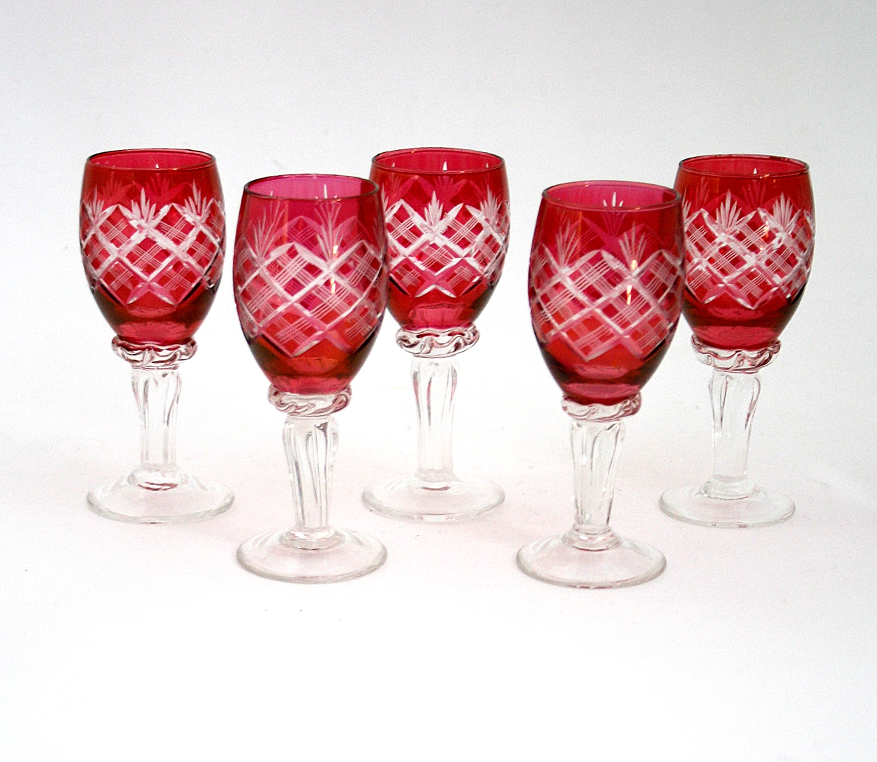 Krystalglas med rød kumme og slibninger, samt slebet stilk. Højde 12 cm. Pris: SOLGT