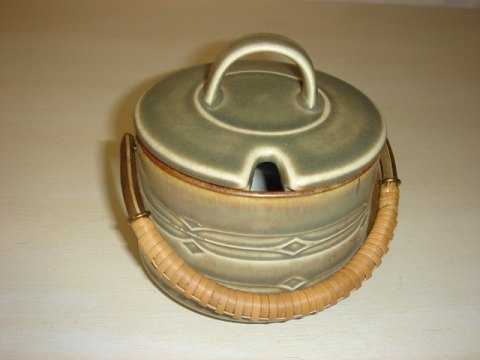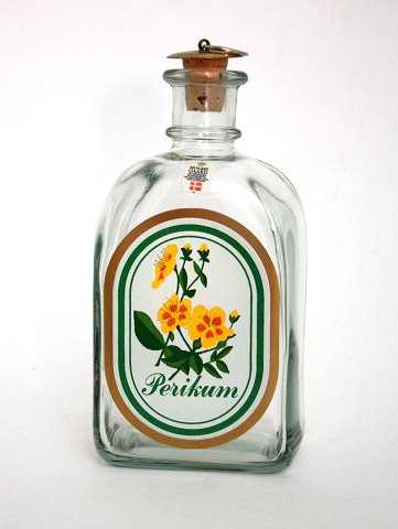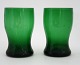 Holmegaard Gorm den Gamle i mørkegrøn glas med kraftig firkantet fod. I bunden en blomst med runde kronblade. Fremstillet fra 1920.
