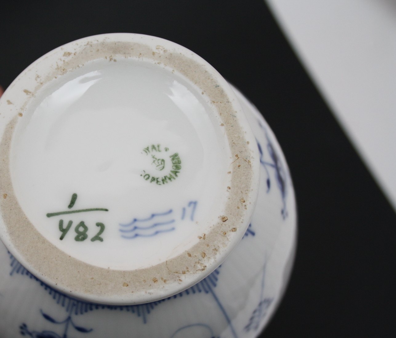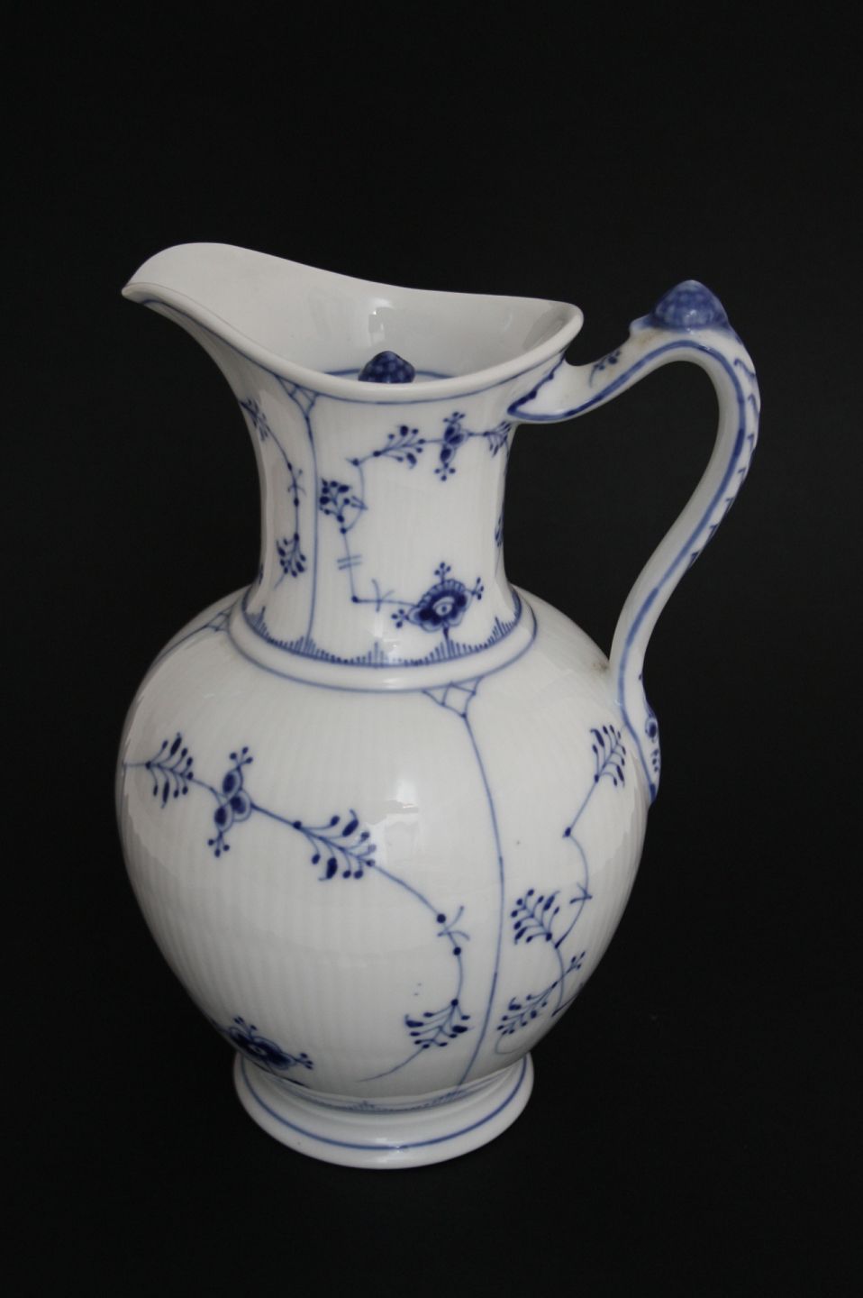 Royal Copenhagen, Musselmalet riflet. Chokoladekande. Formnr. 1-482. Fra 1898 til 1923. Højde 22 cm. Længde 15 cm. Pris: SOLGT