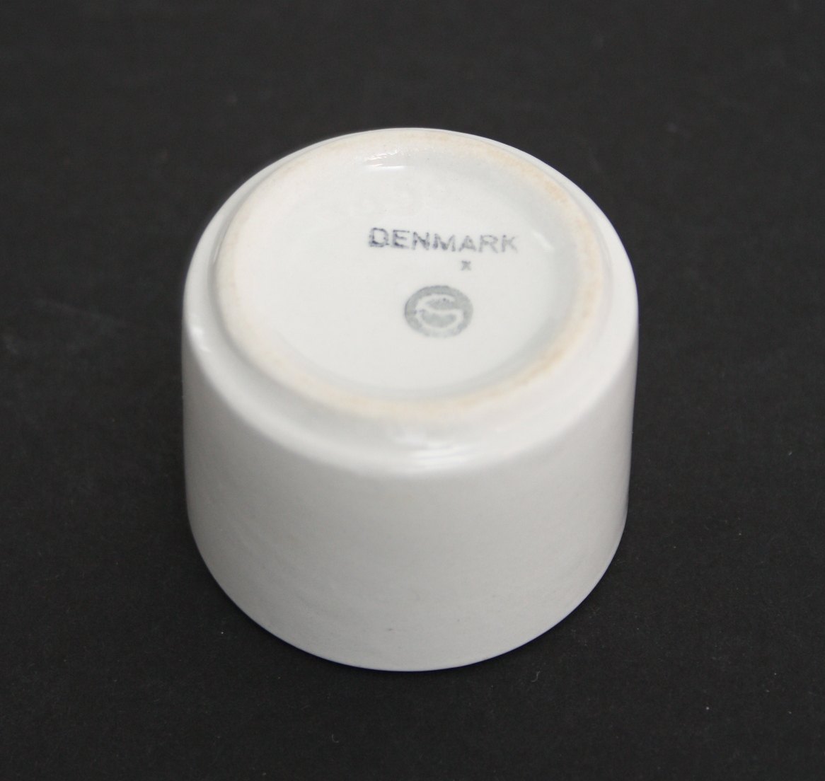 Royal Copenhagen fajance og Aluminia, Blåkant. Designet af Grethe Meyer i 1965. Æggebæger. Nr. 3050. Højde 3,5 cm. Diameter 4,5 cm. Pris: SOLGT