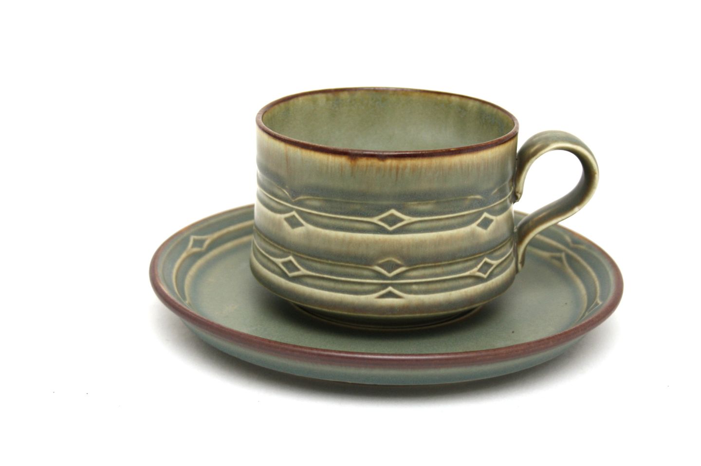 Bing & Grøndahl og Nissen, Rune, Morgenkop stor tekop med underkop. Højde 6 cm. Diameter 9 cm. Pris: SOLGT