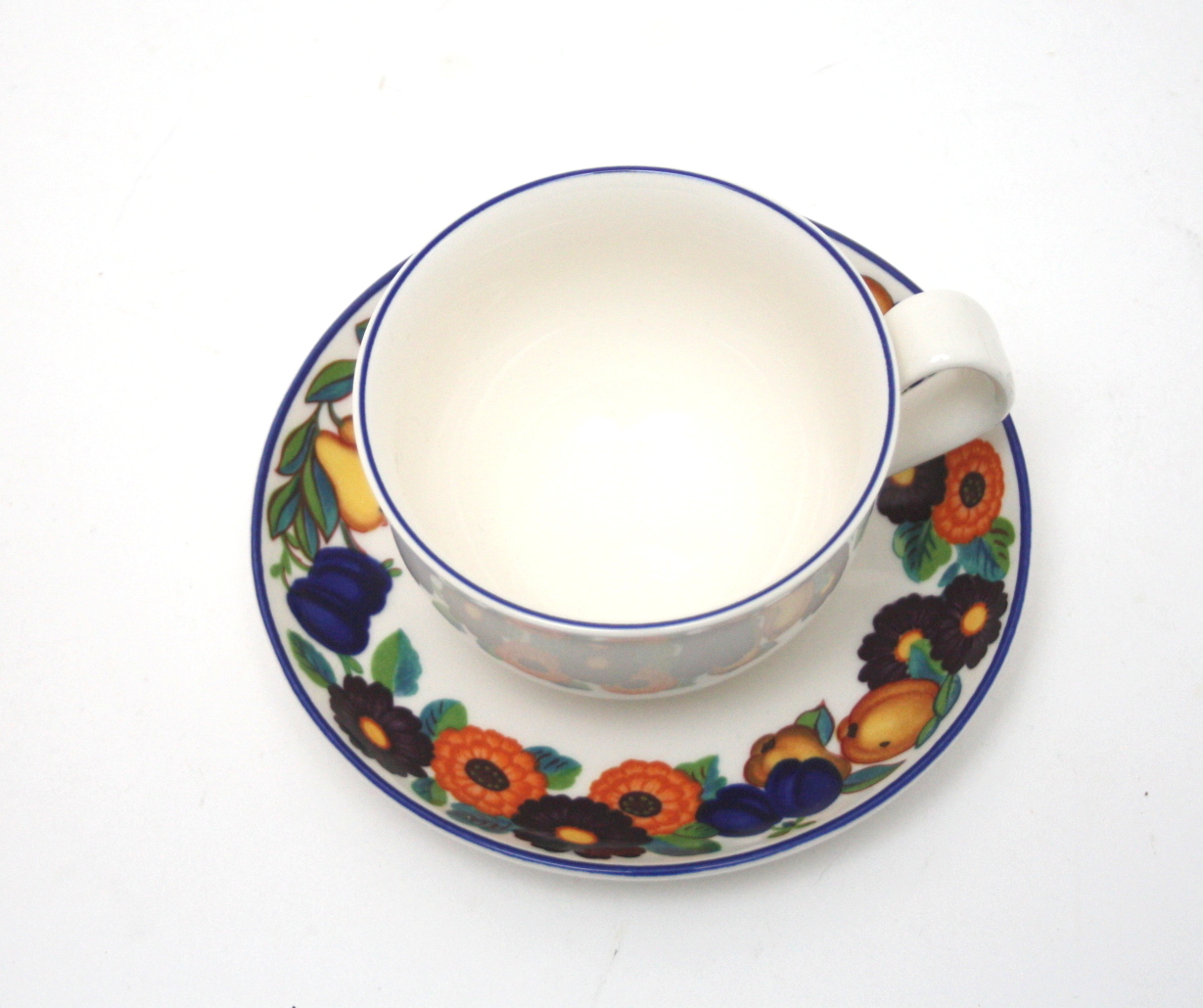 Royal Copenhagen, Golden summer designet af Chr. Joachim. Kaffekop med underkop. Dek.nr. 072. Højde 6 cm. Diameter 8,5 cm. Pris: SOLGT