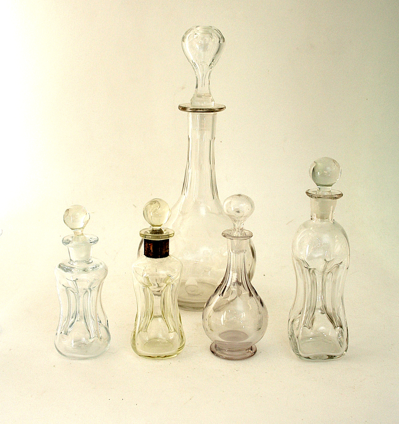 1. tv. Kuvertklukflaske. Højde 13,5-14,5 cm. Pris: SOLGT