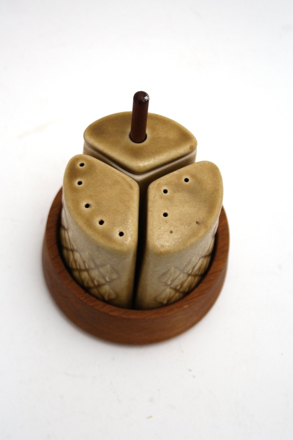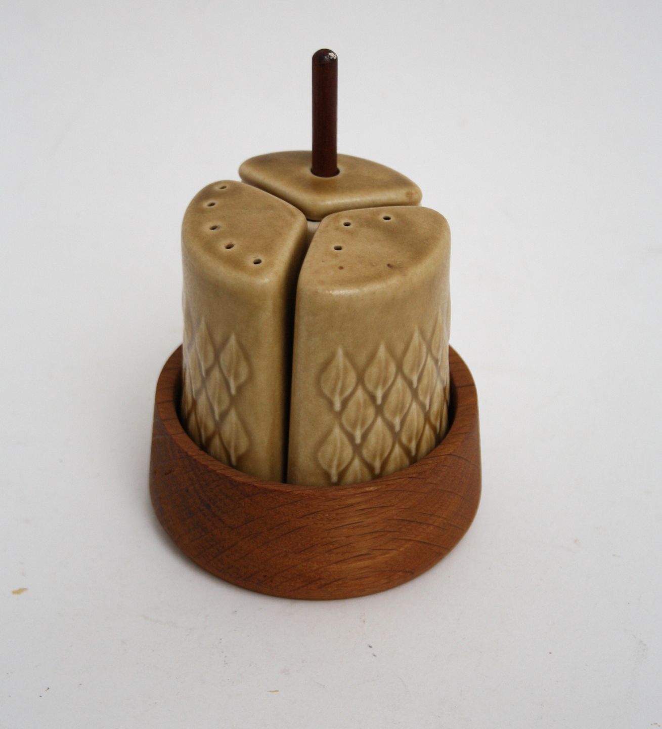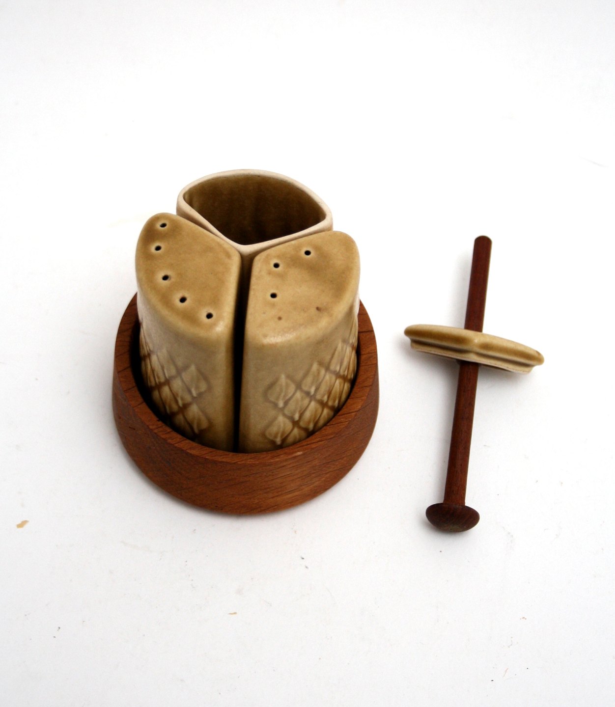 Kronjyden, Relief designet af Jens Harald Quistgaard i 1958. Plat de menage med teakholder. Pris: SOLGT