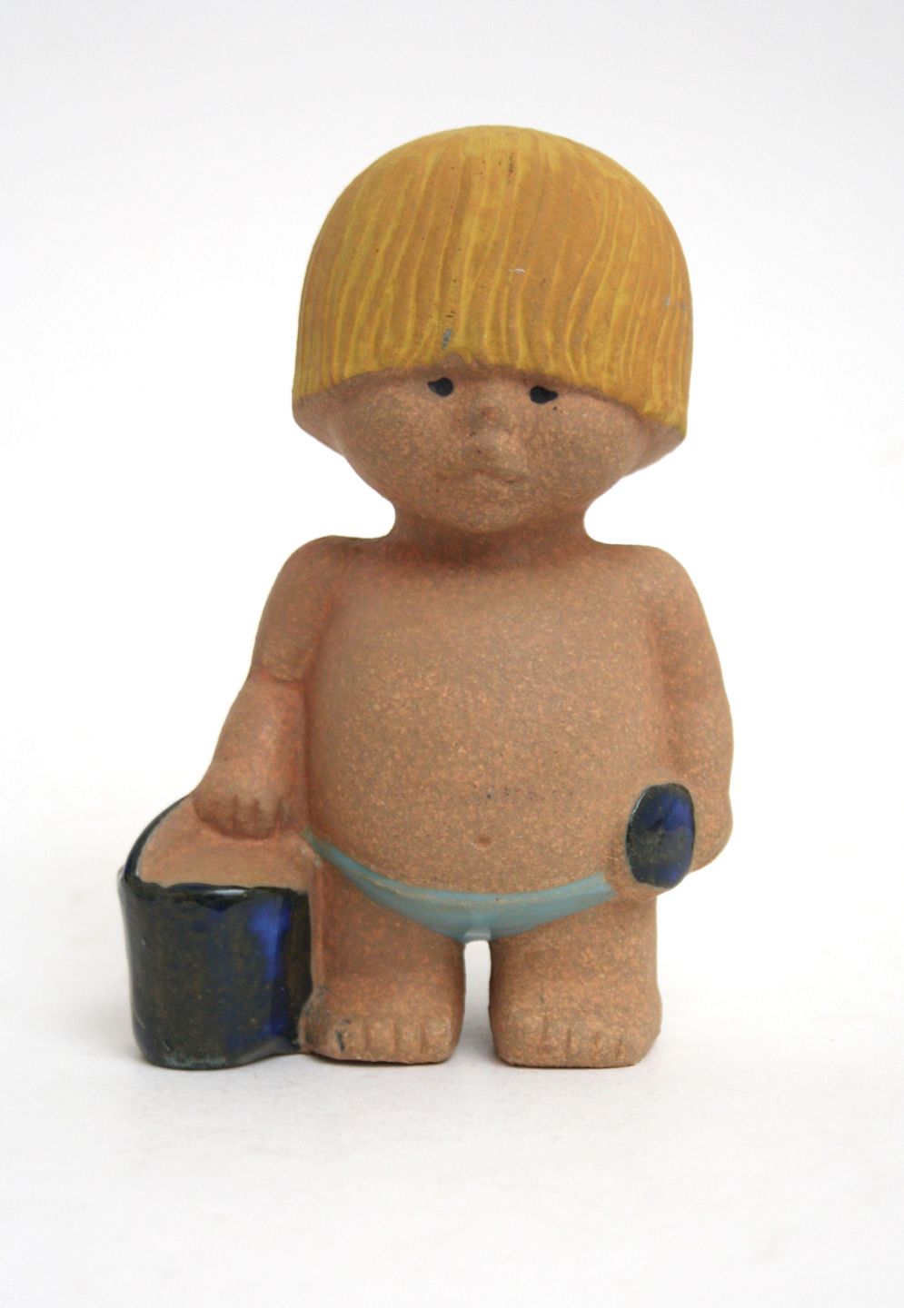 Gustavsberg, Lisa Larson, håndmalet stentøj. Serien Alverdens børn, Vest, Skandinavisk dreng. Højde 12,5 cm. Pris: SOLGT