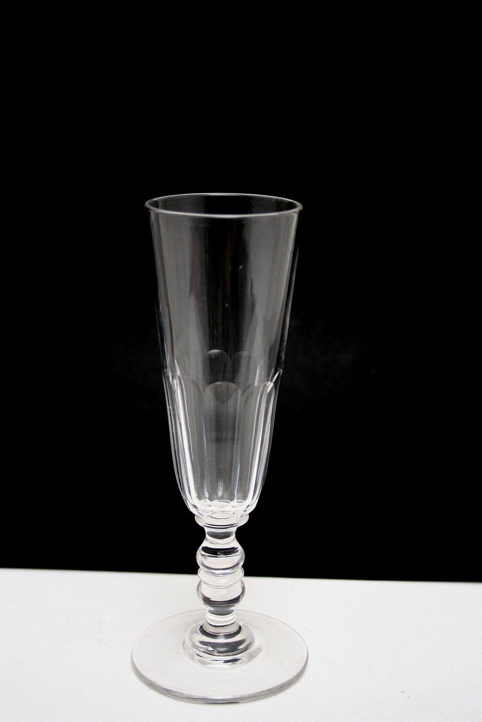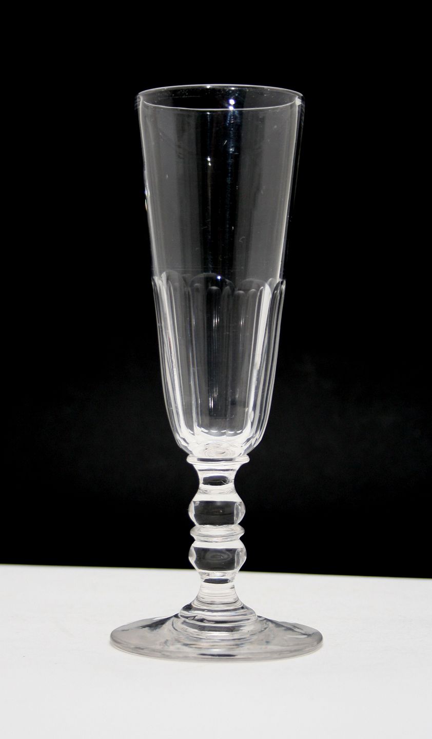 Toupie krystal champagneglas. Brugsslid i form af småridser. Højde 17,5 cm. Øverste diameter 5,5 cm. Pris: SOLGT