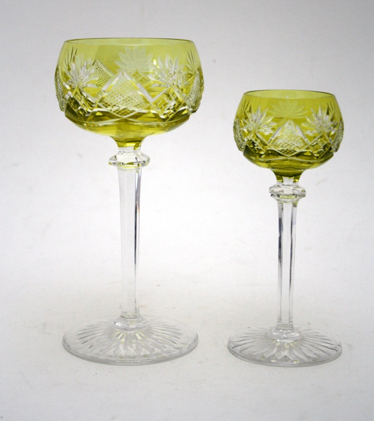 Val st. Lambert, Belgien, Berncastel farvede krystal glas. Slibninger i kumme, stilk og bund. Signeret Val st. Lambert i bund på vinglassene. Alle i flot stand.