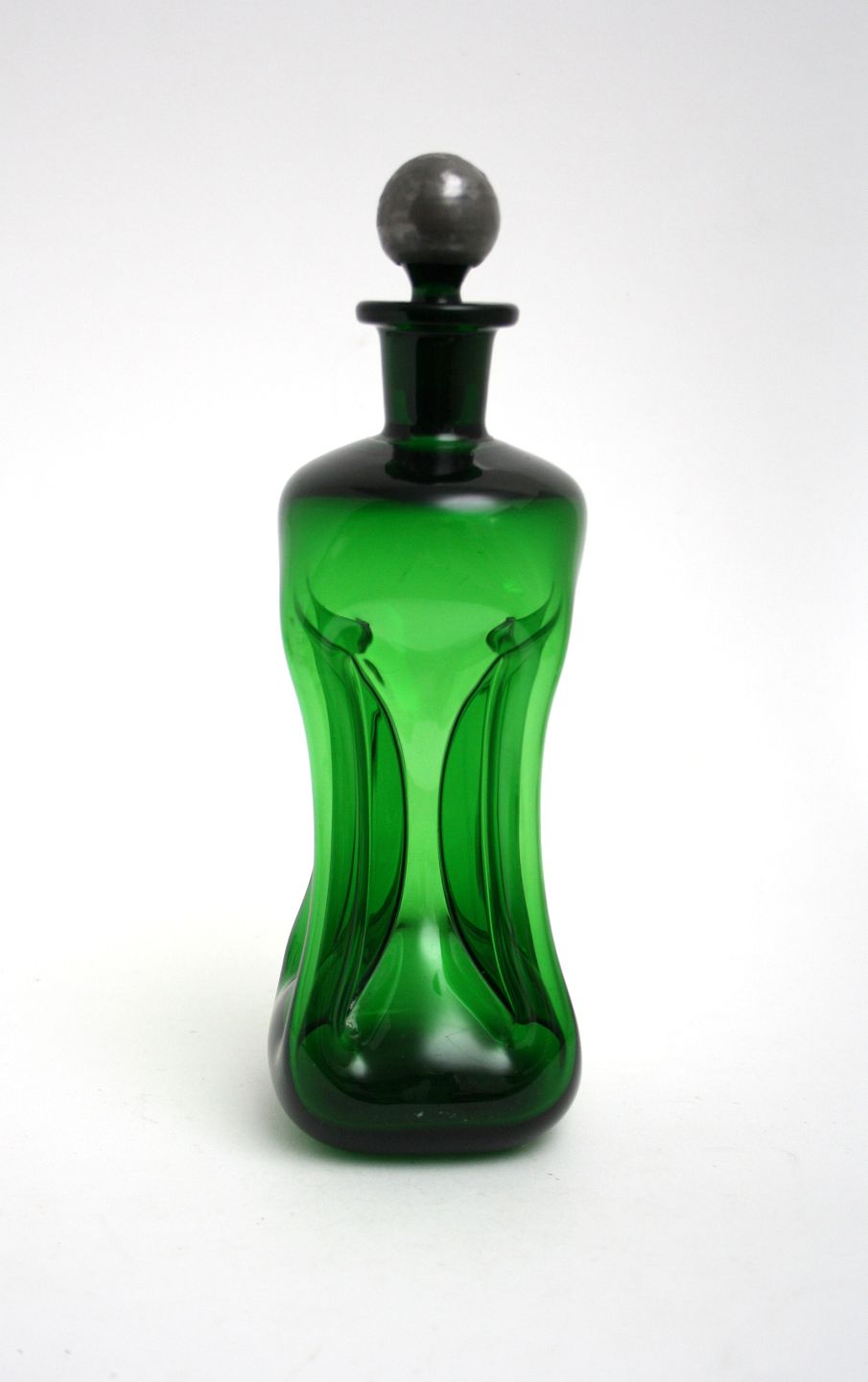 Holmegaard, Grøn klukflaske med tin prop. Højde 27,5 cm. Pris: SOLGT