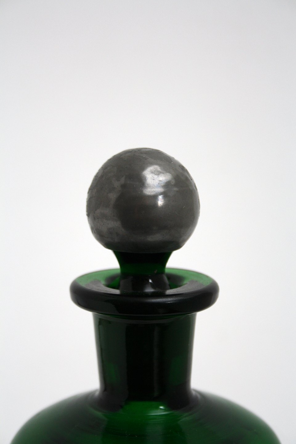 Grøn klukflaske med tin prop, Holmegaard