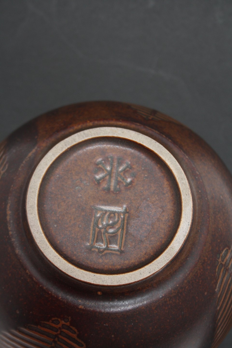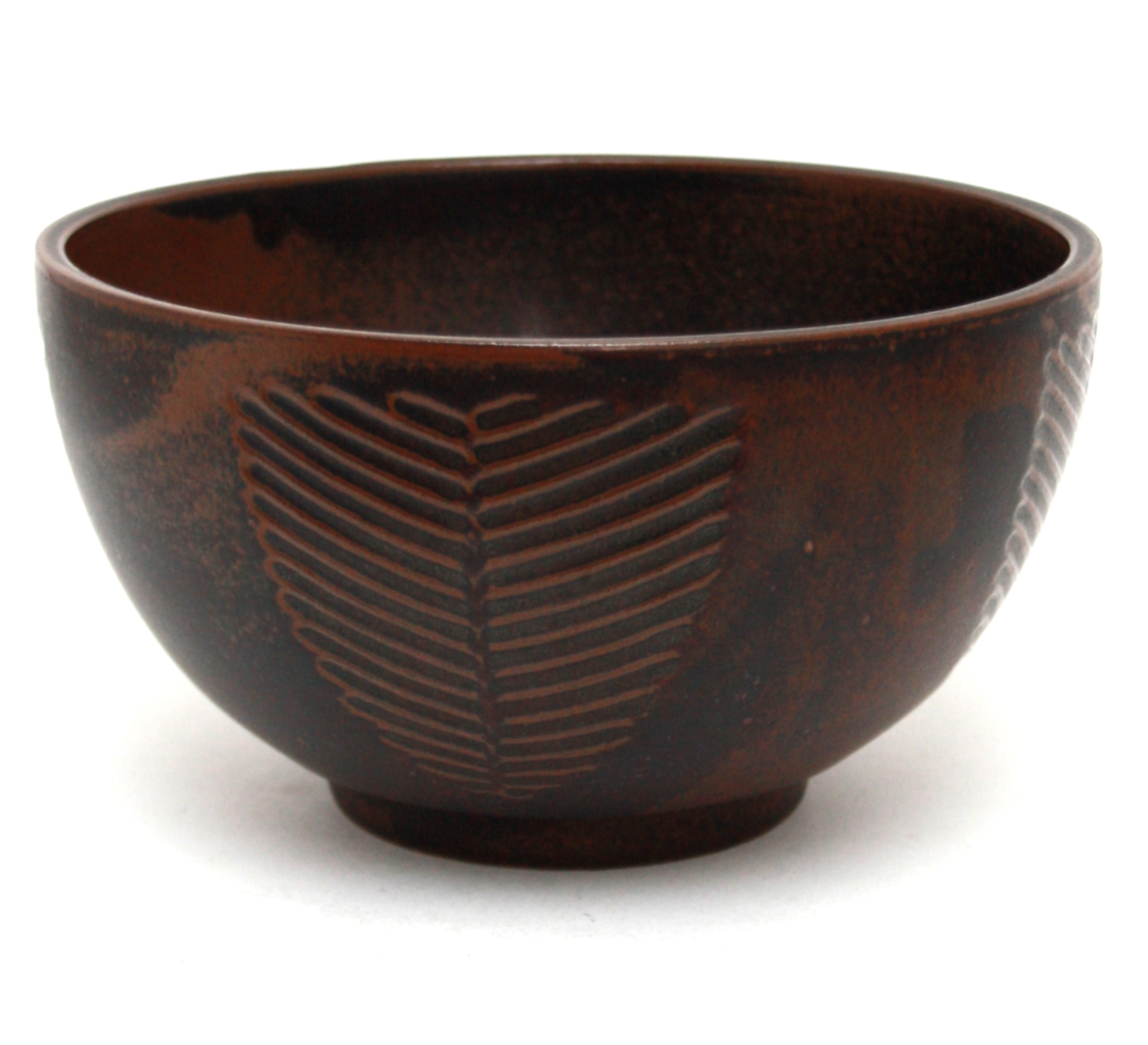 Knabstrup, Nautil brun matglaseret skål med bladrelief udført af Erik Reiff i 1977-1978. Højde 10 cm. Øverste diameter 19 cm. Perfekt stand. Pris: SOLGT