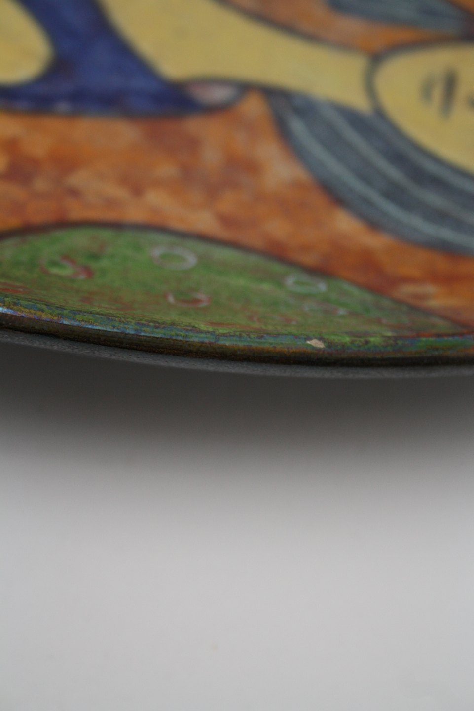 Michael Andersen, Bornholm, Trekantet fad med kvinde i krakelé glasur. 25 x 25 cm. Højde 5 cm. Formnr 5550. Fadet er i perfekt stand, bortset fra lille glasurafslag på højre side. Pris: SOLGT