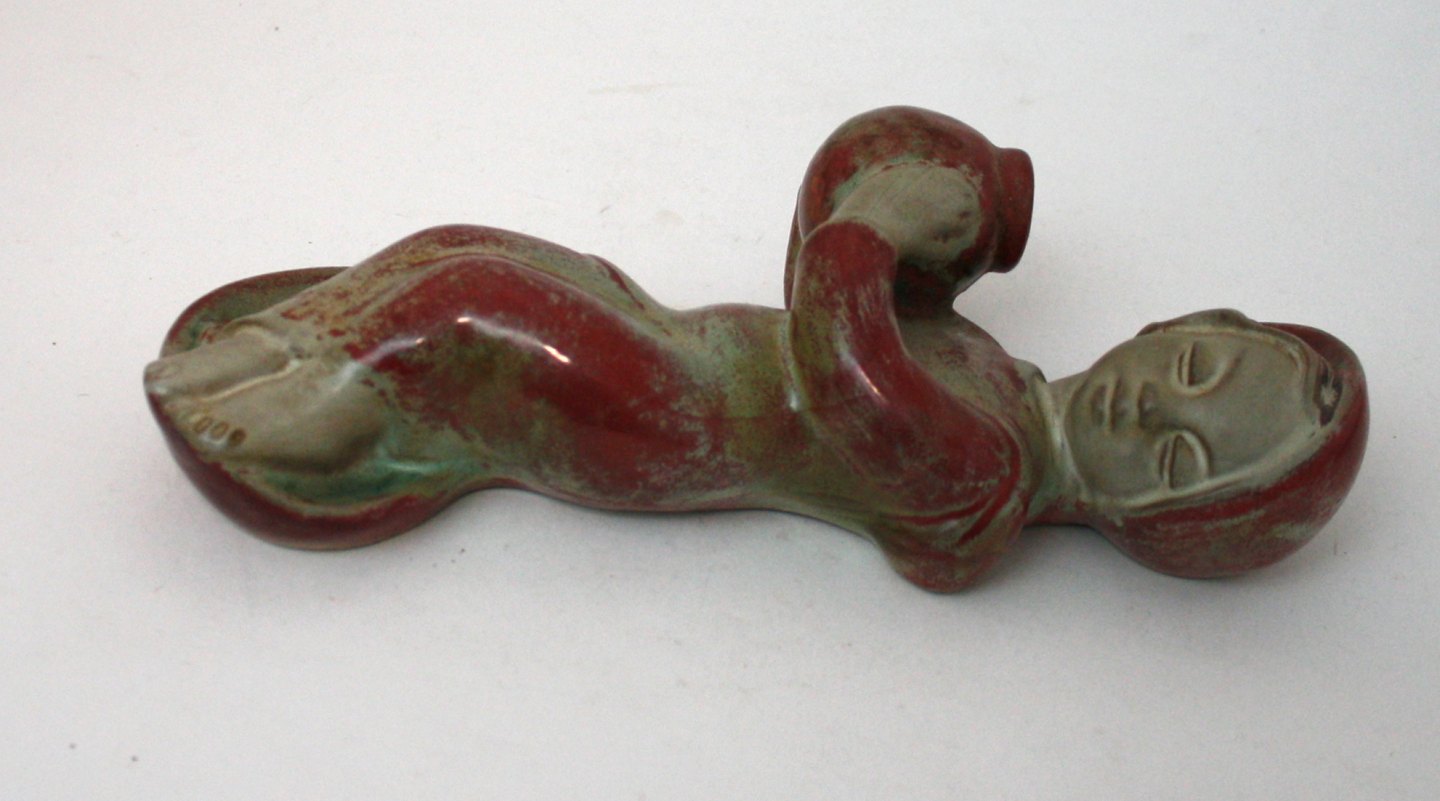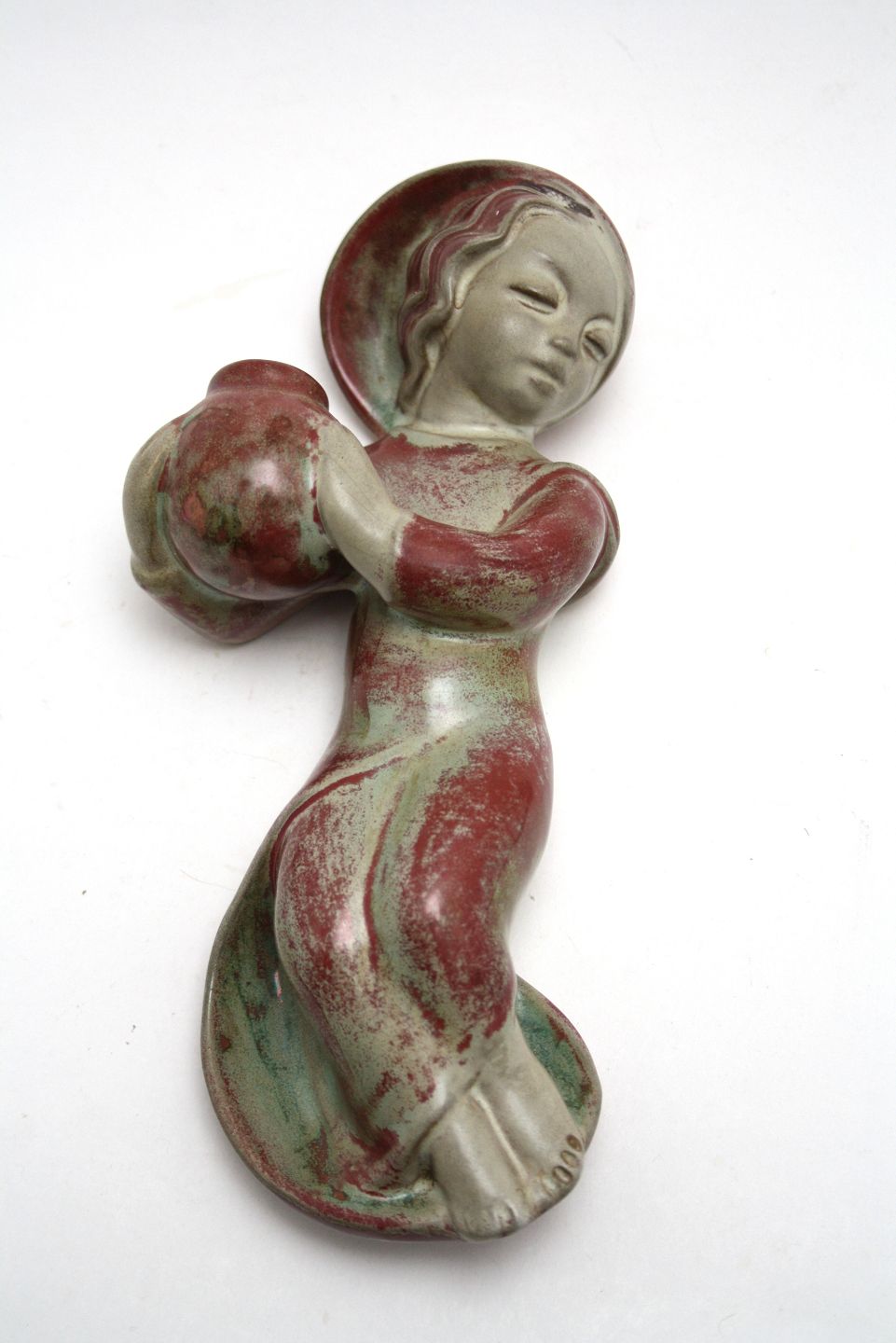 Michael Andersen, Bornholm, Pige med krukke, figur til at hænge på væggen. Formnr. 3845. Længde 22,5 cm. Bredde 9,5 cm. Flot stand. Pris: SOLGT
