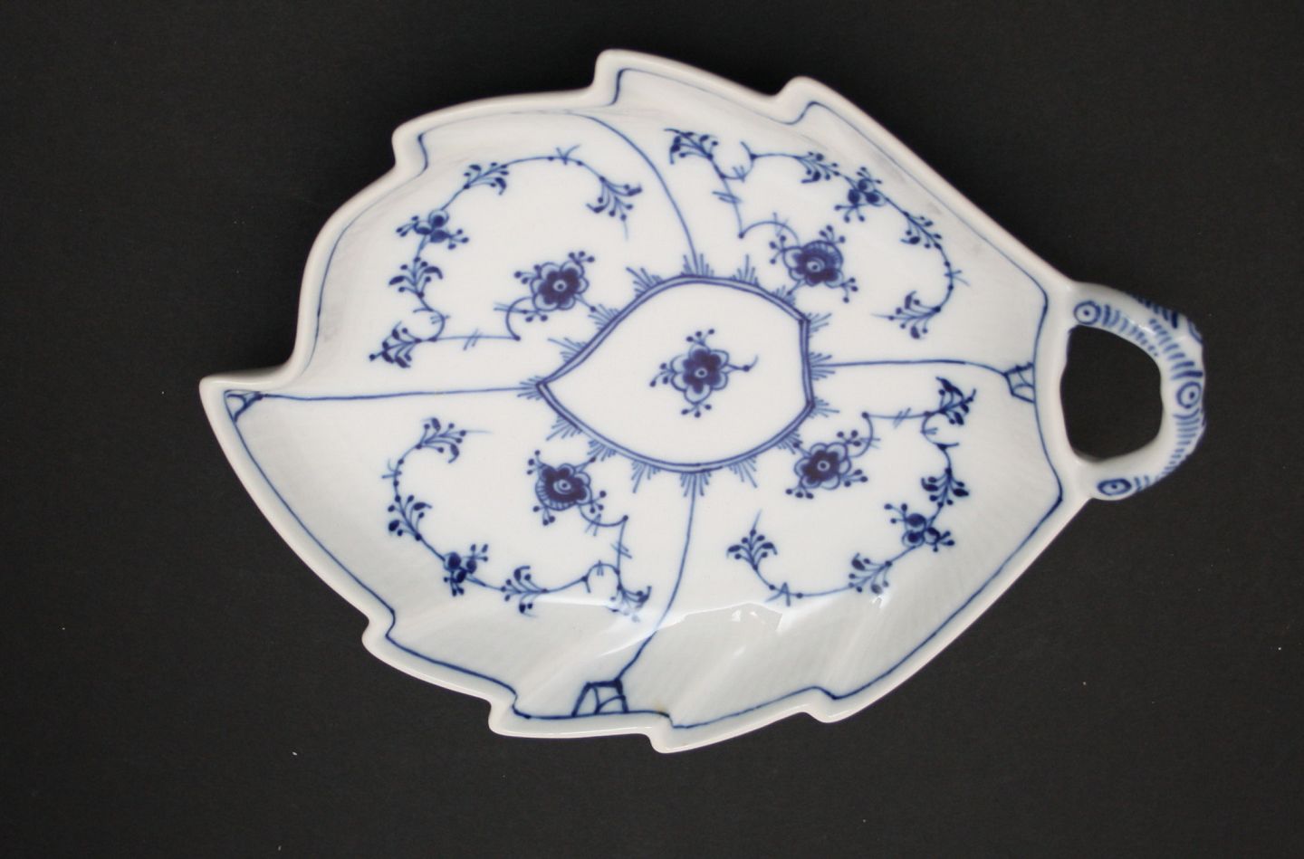 Royal Copenhagen, Musselmalet riflet Bladassiet. Formnr. 1-144. Længde 22,5 cm. Bredde 17,5 cm. Perfekt stand. I. sortering. Pris: SOLGT