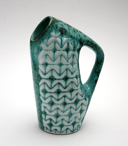 Aluminia, Tranquebar lyseblå fajance med mørkeblå tulipan og flettet bort designet af Christian Joachim. Produceret fra 1914 til 1969, hvor det overgik til Royal Copenhagen. Håndmalet. Flot stand.