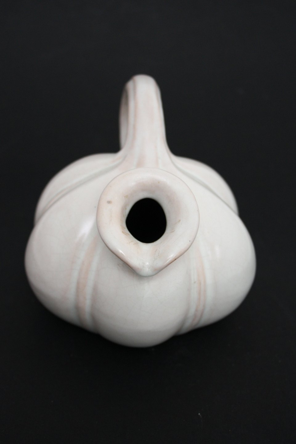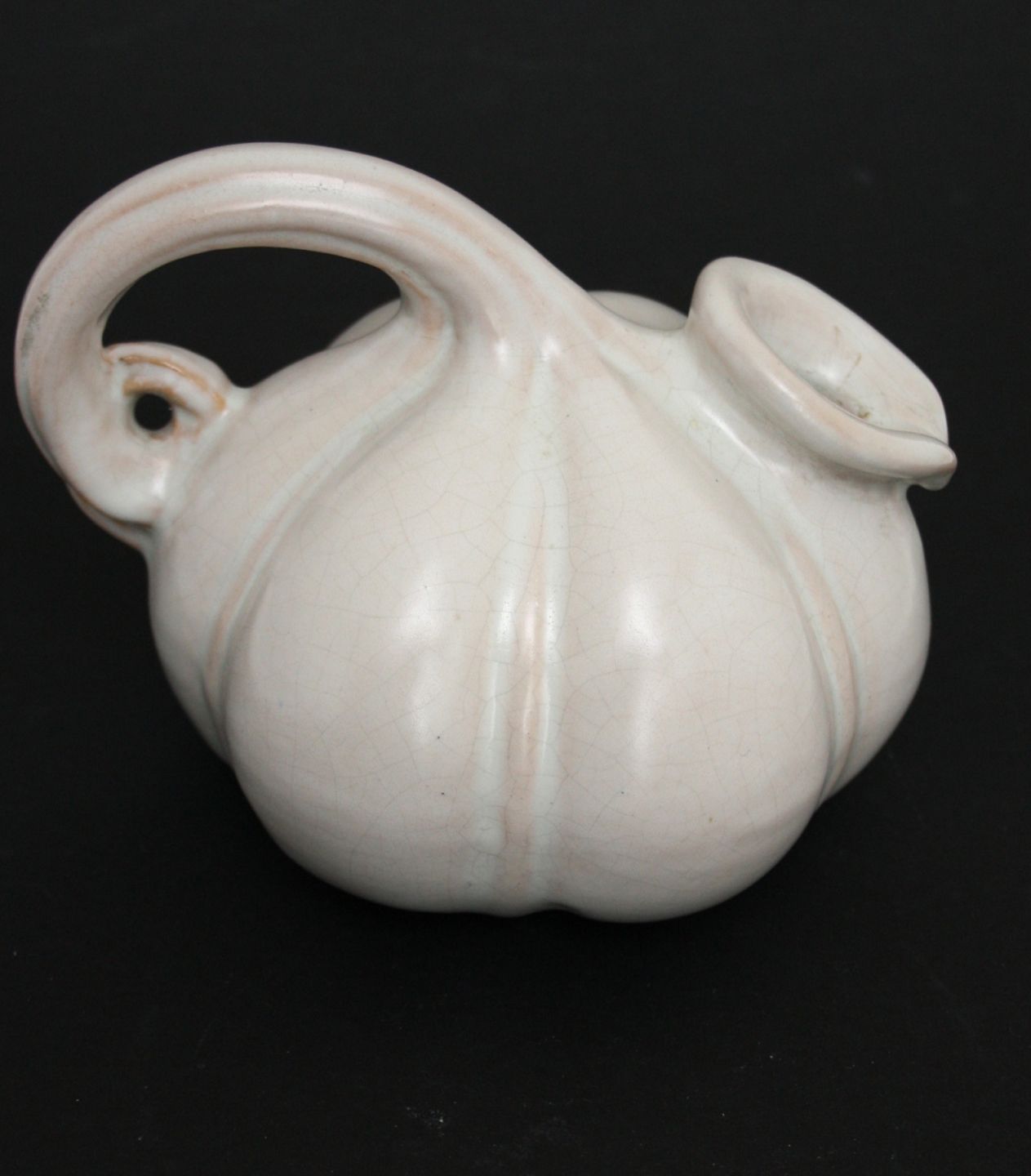 Michael Andersen, Bornholm. Hvid mat glasereret græskarkande. Højde 11,5 cm. Diameter 12 cm. Flot stand. Pris: SOLGT