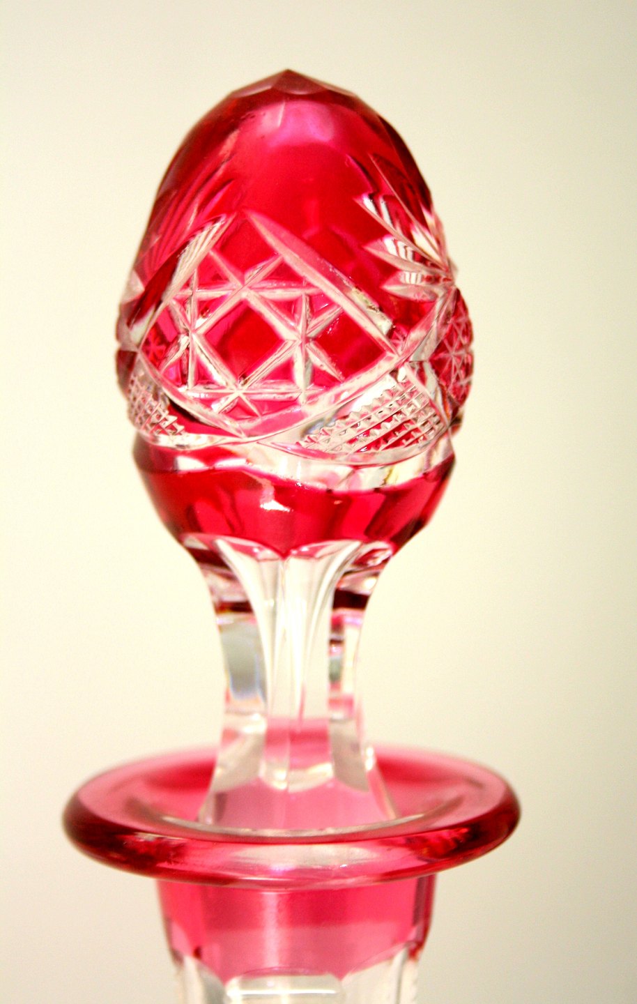Val st. Lambert, Belgien, rød krystal karaffel med flotte slibninger. signeret Val st. Lambert. Højde 41 cm. Flot stand. Pris: SOLGT